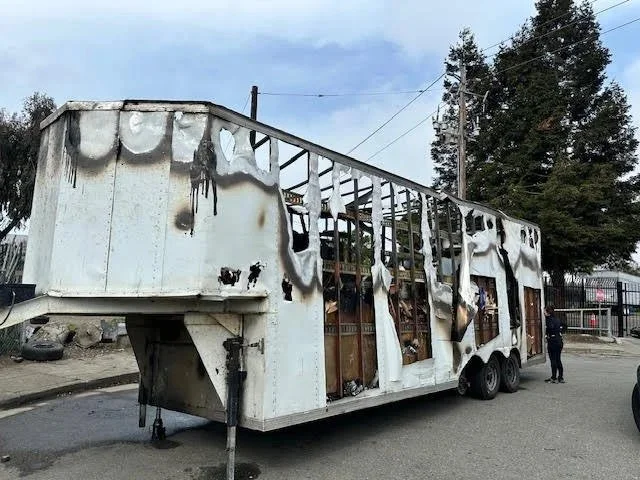 Accidents are an unfortunate risk during long-distance transport - and this artwork has quite the story to tell. While en route from Mexico, the trailer carrying our client’s family belongings caught fire after an axle failed. Although the firefighters extinguished the blaze, several of its contents were destroyed.